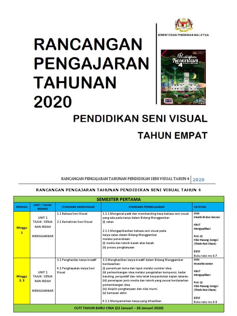 Download Rpt Pendidikan Seni Visual Tahun 4 Hebat Rancangan Pelajaran Tahunan Pendidikan Seni Tahun 4 By Noor Azlinda Skoloh